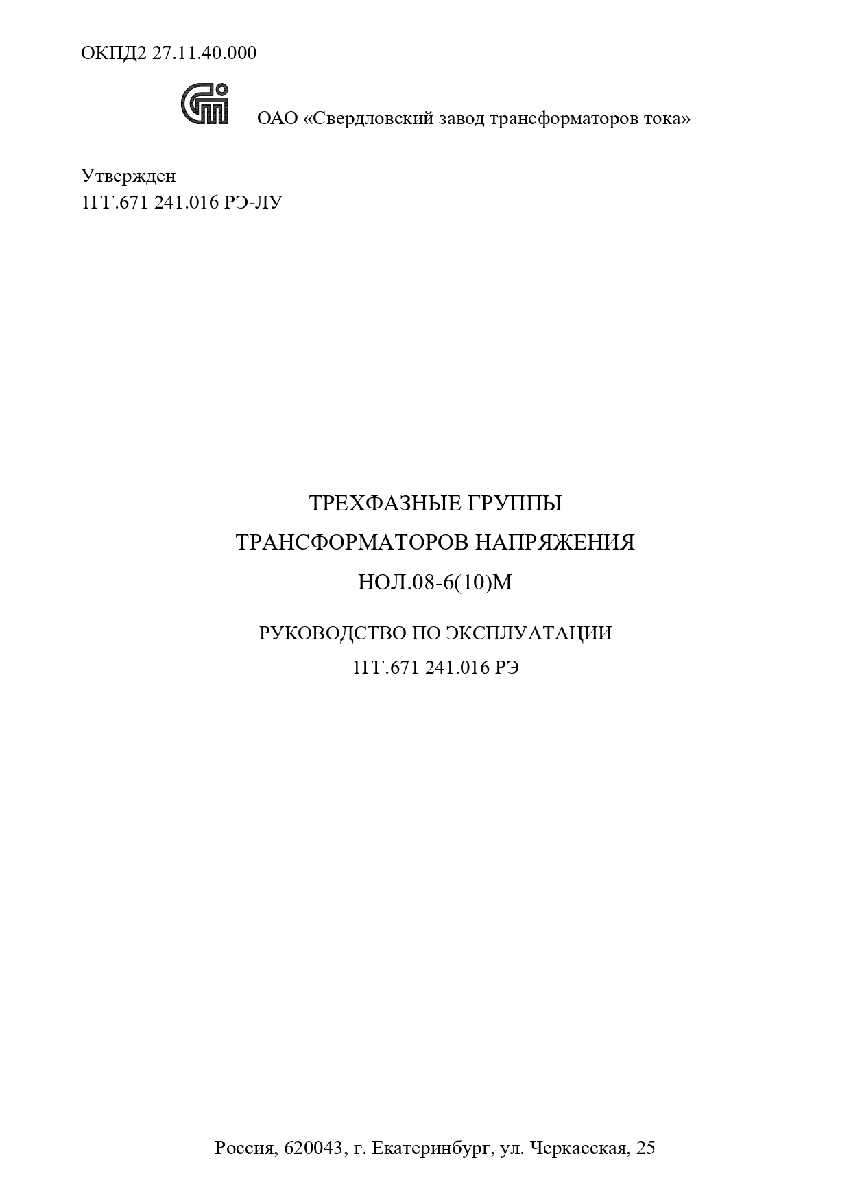 Трансформаторы напряжения ЗНОЛ.01 П(К)-20