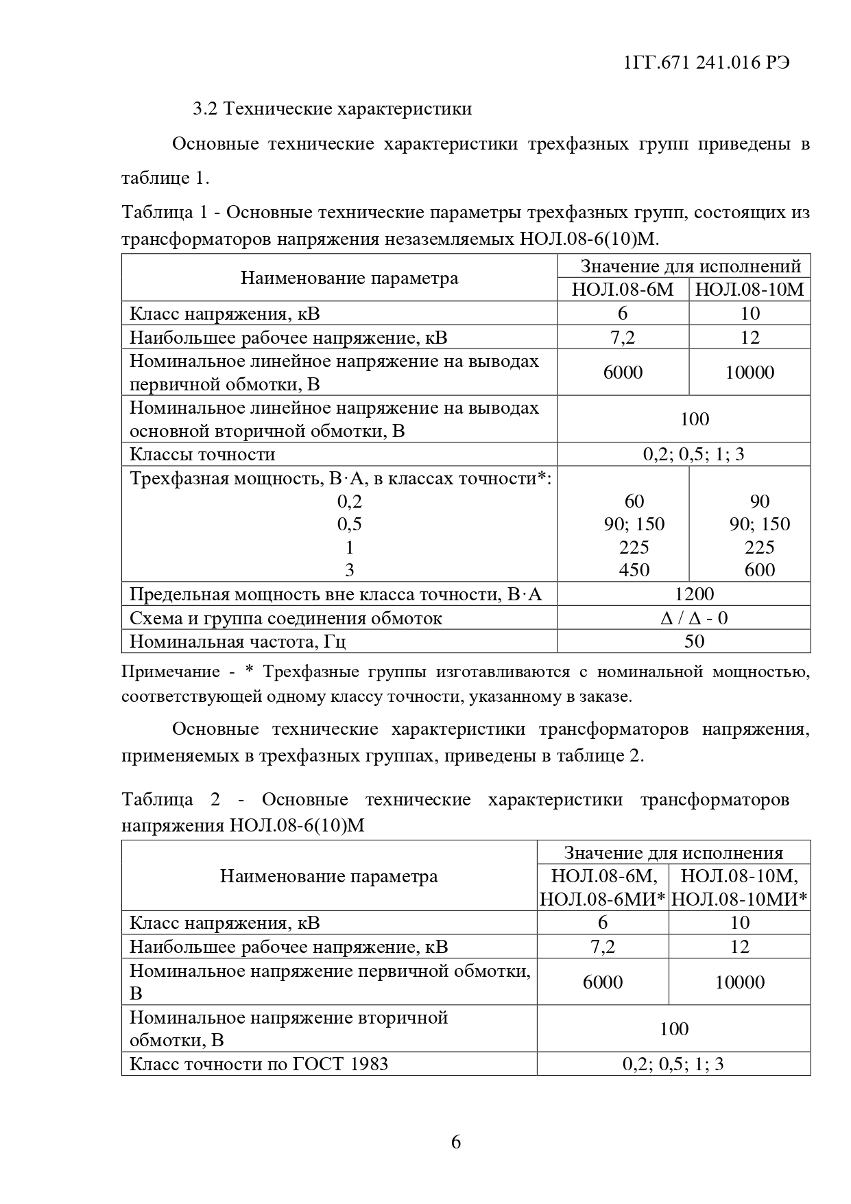 Трансформаторы напряжения 3хНОЛ.08-6(10)М