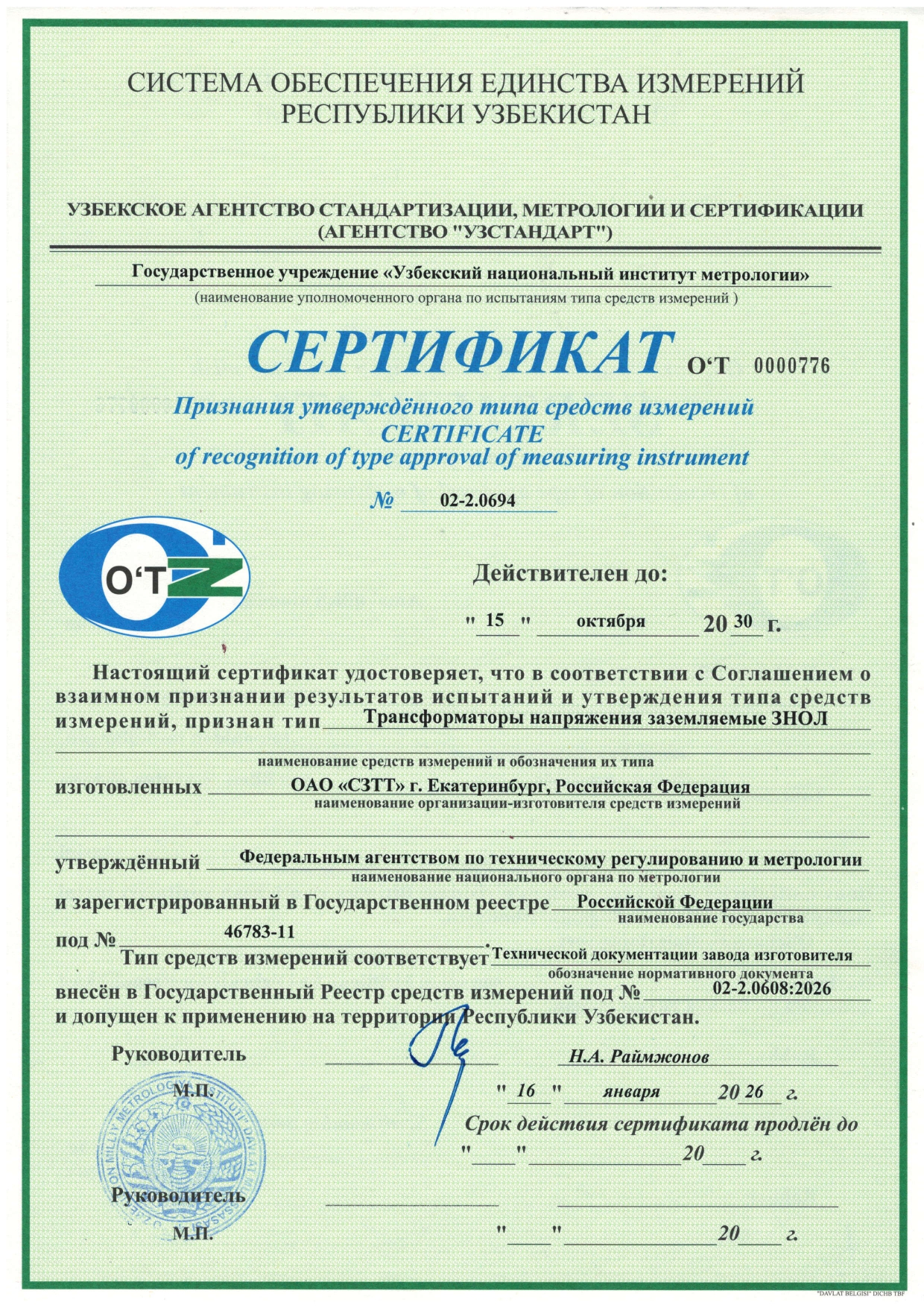 Товар сертифицирован Межповерочный интервал: 8 лет