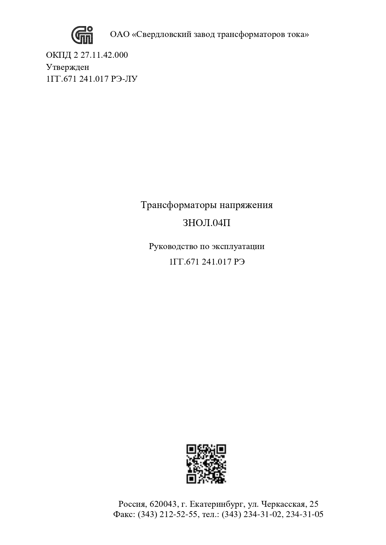 Трансформаторы напряжения ЗНОЛ.01 П(К)-20