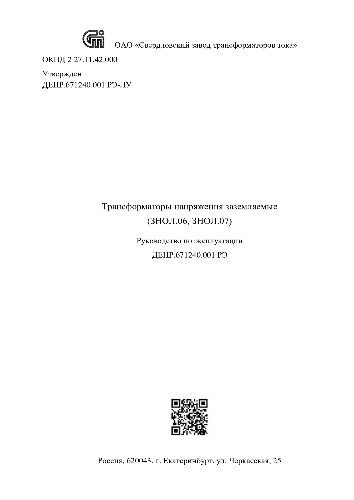 Трансформаторы напряжения ЗНОЛ.01 П(К)-20