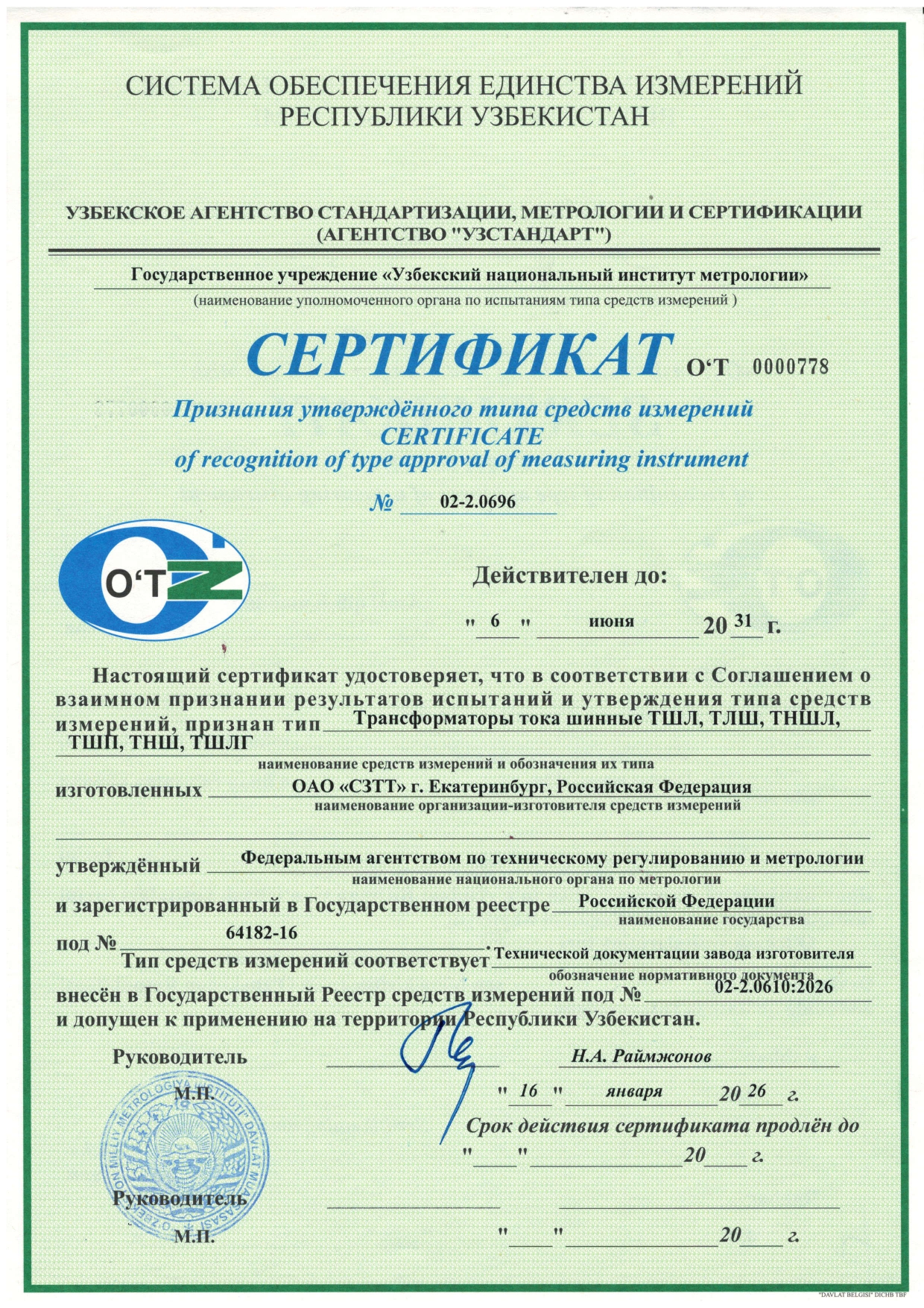 Номинальный первичный ток, А: 75—1250