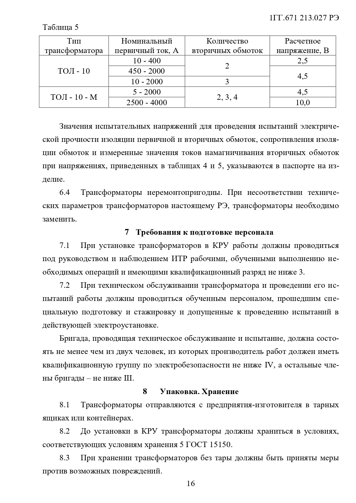 Класс напряжения, кВ: 6; 10
