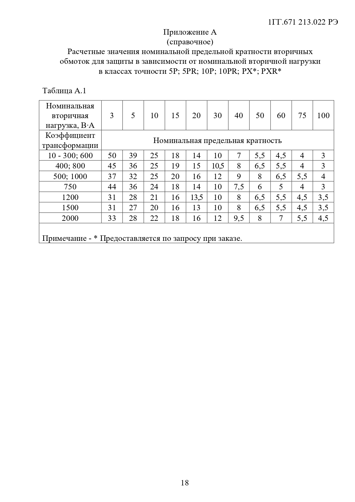 * Значения номинальной предельной кратности вторичной обмотки для защиты и номинального коэффициента безопасности приборов вторичной обмотки для измерений приведены при наибольшем
