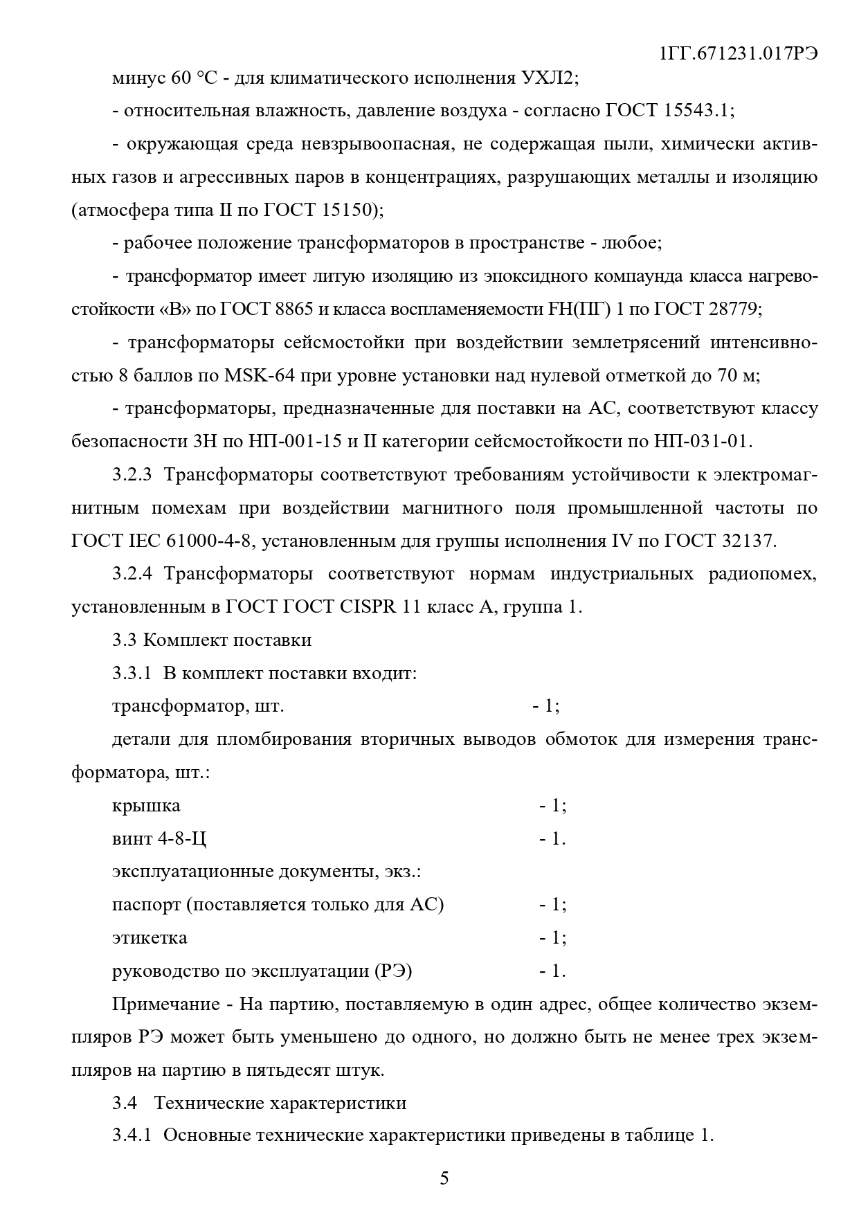 Климатическое исполнение: У3; Т3