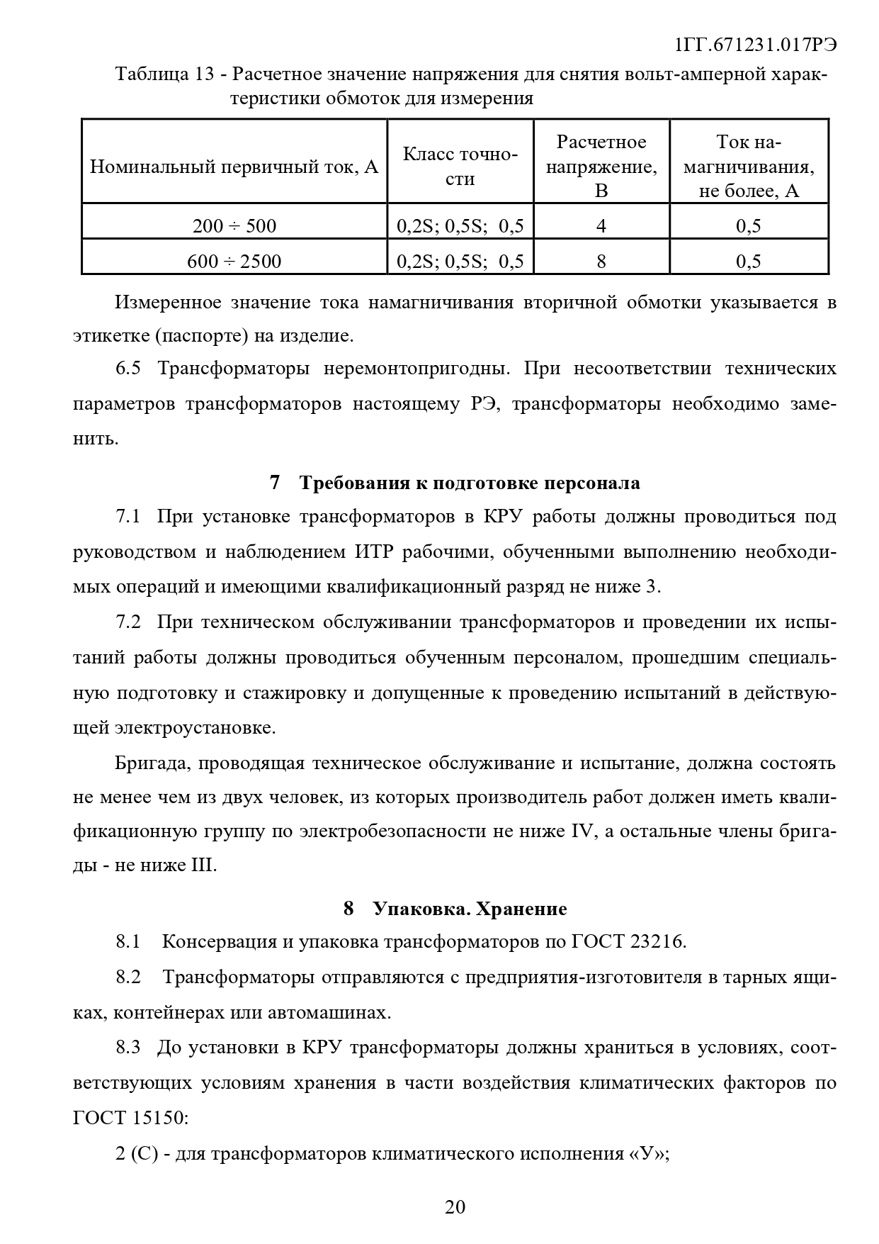 Класс напряжения, кВ: 20