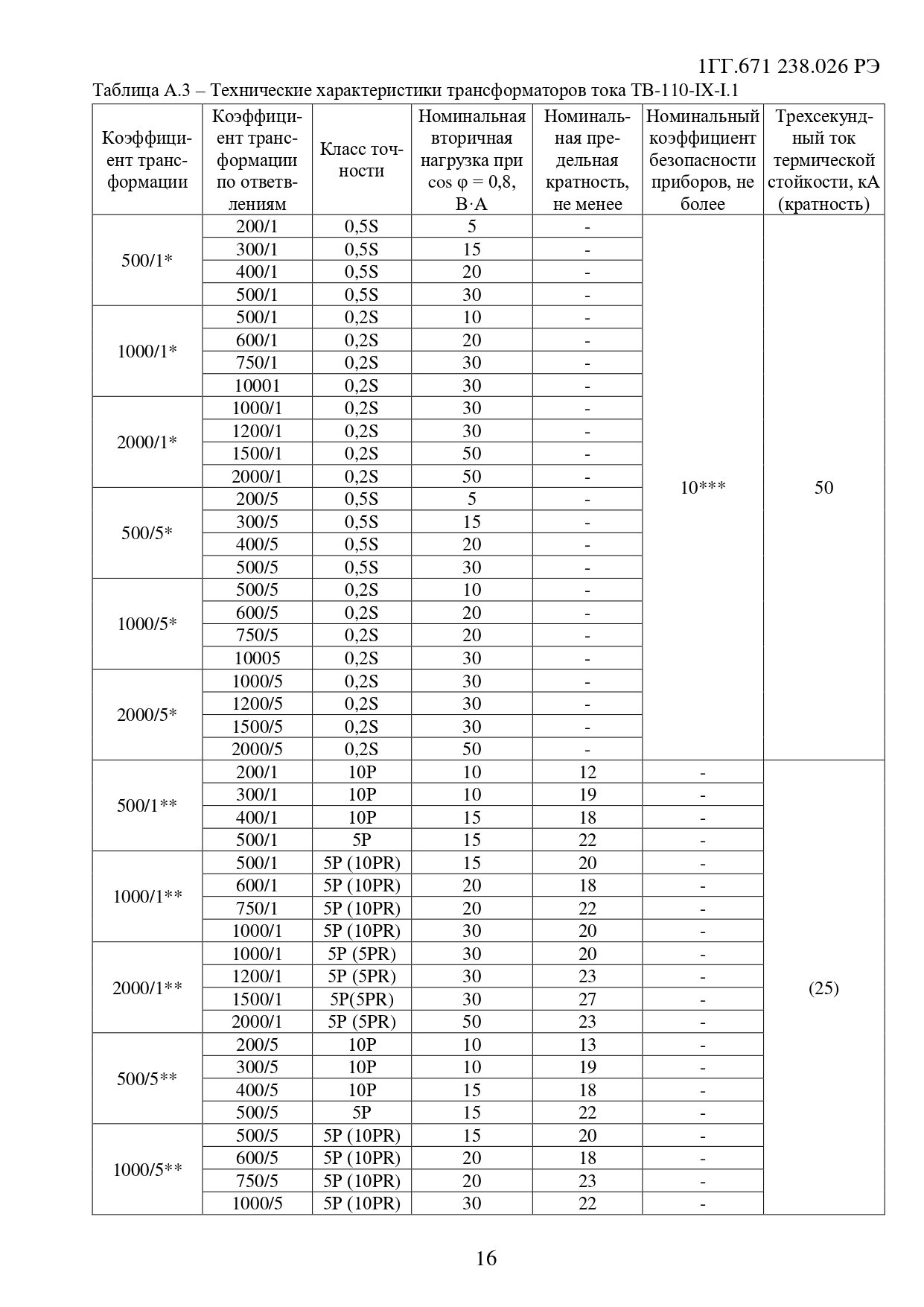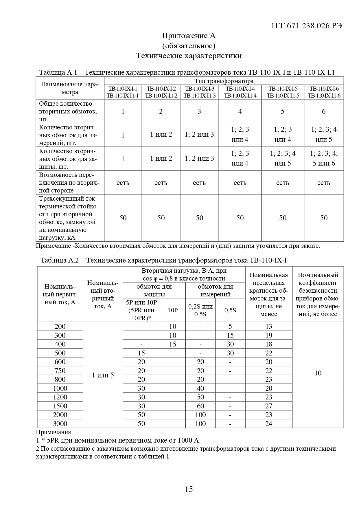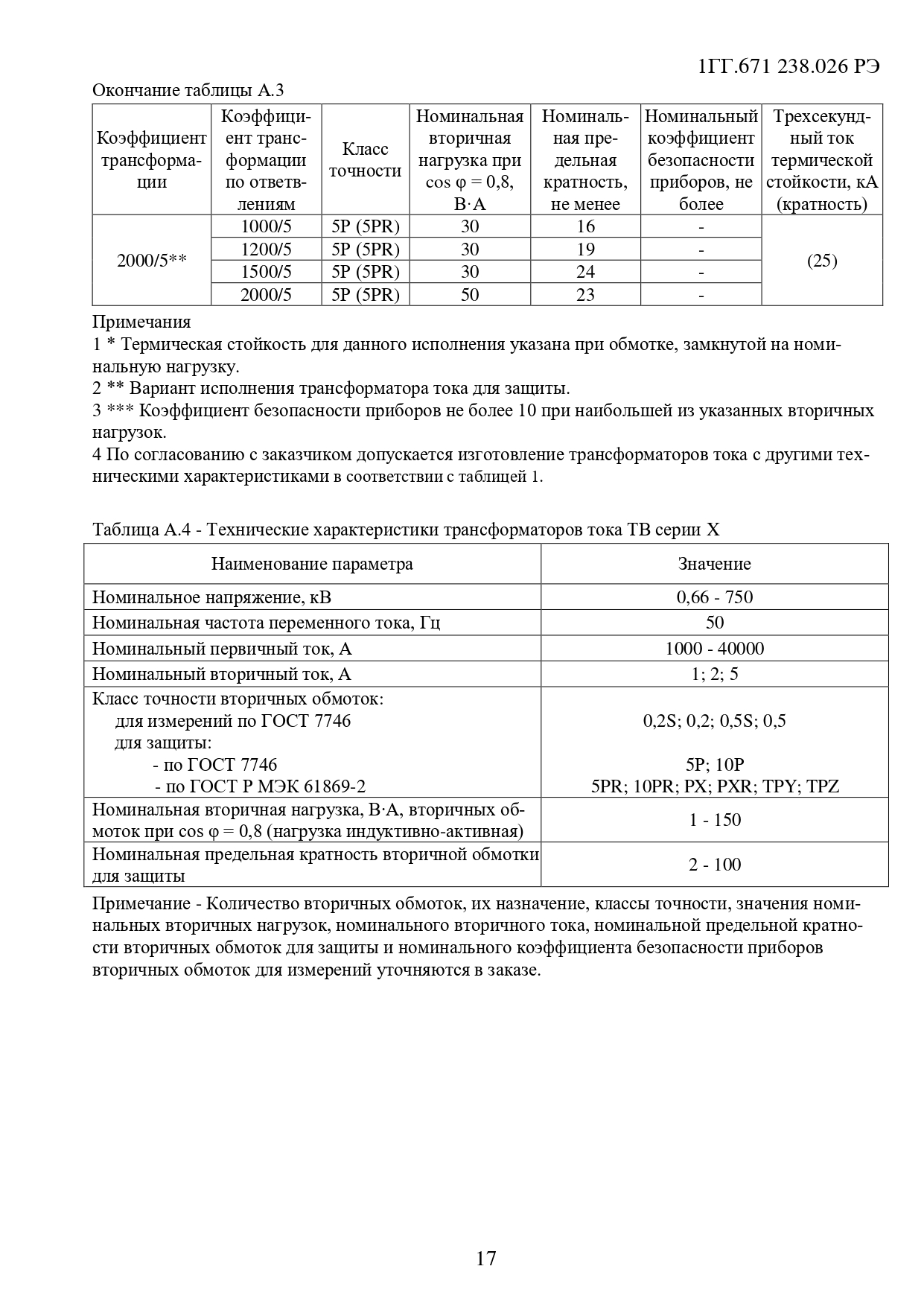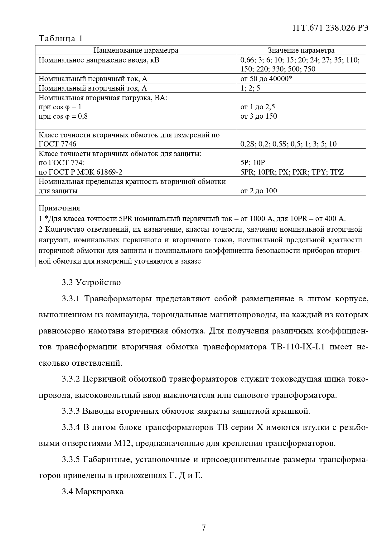 Примечание. Количество вторичных обмоток, их назначение, классы точности, значения номинальных вторичных нагрузок, номинального вторичного тока, номинальной предельной кратности вторичных обмоток для защиты и номинального коэффициента безопасности приборов вторичных обмоток для измерений уточняются в заказе.