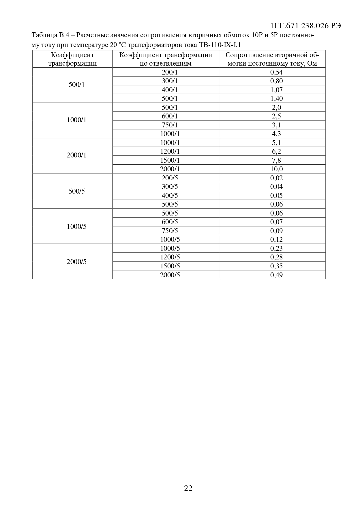 Класс точности вторичных обмоток: