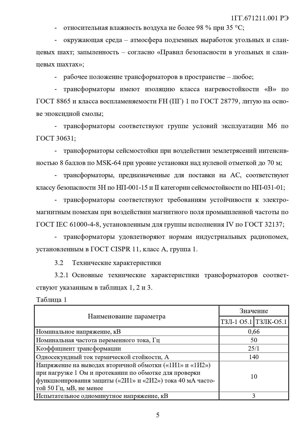 Технические характеристики трансформаторов ТЗЛ-1 О5.1